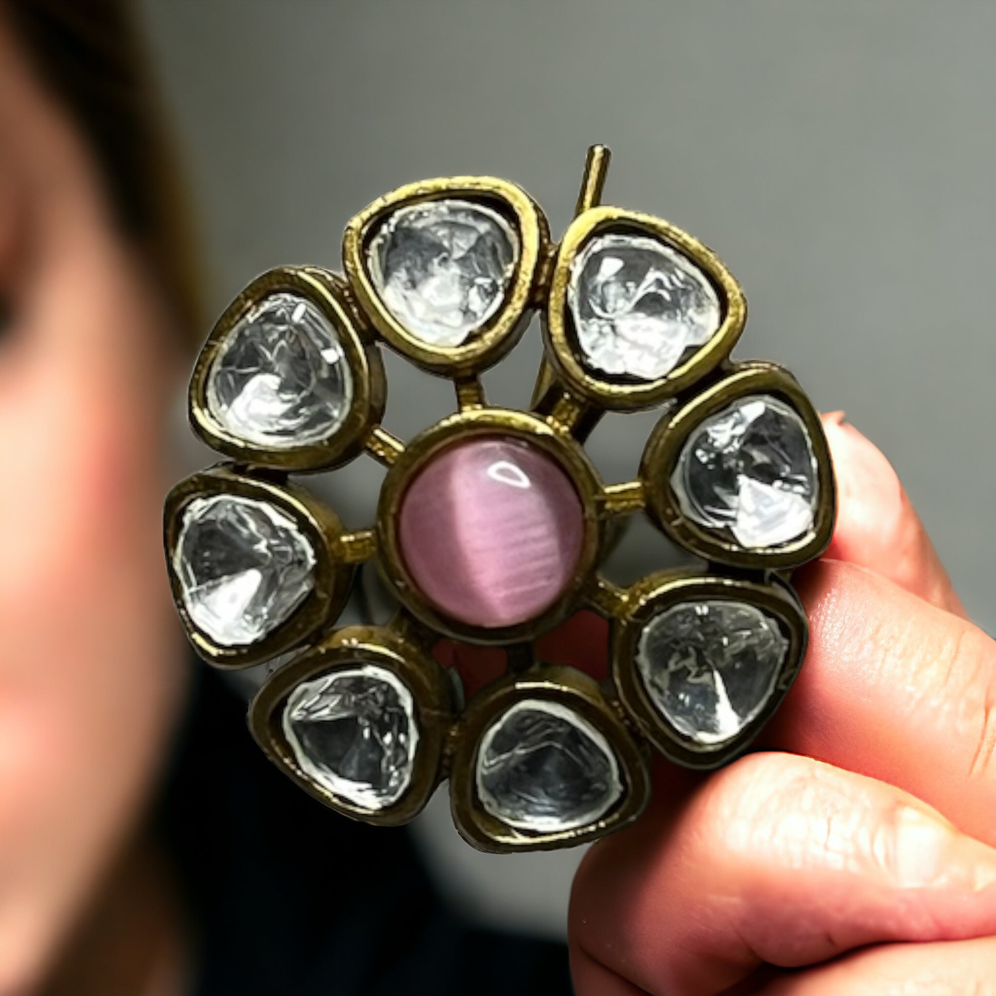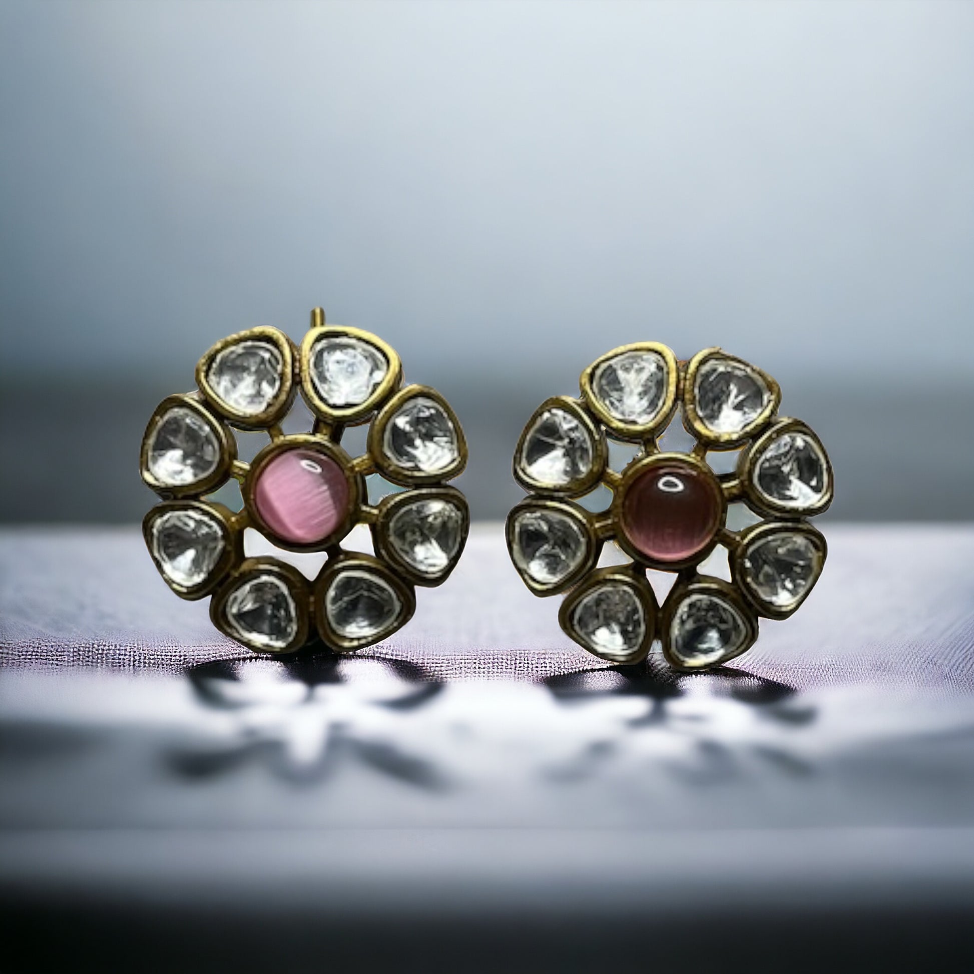 SS Blush Bloom: Pink Gemstone Pendant Earring Set