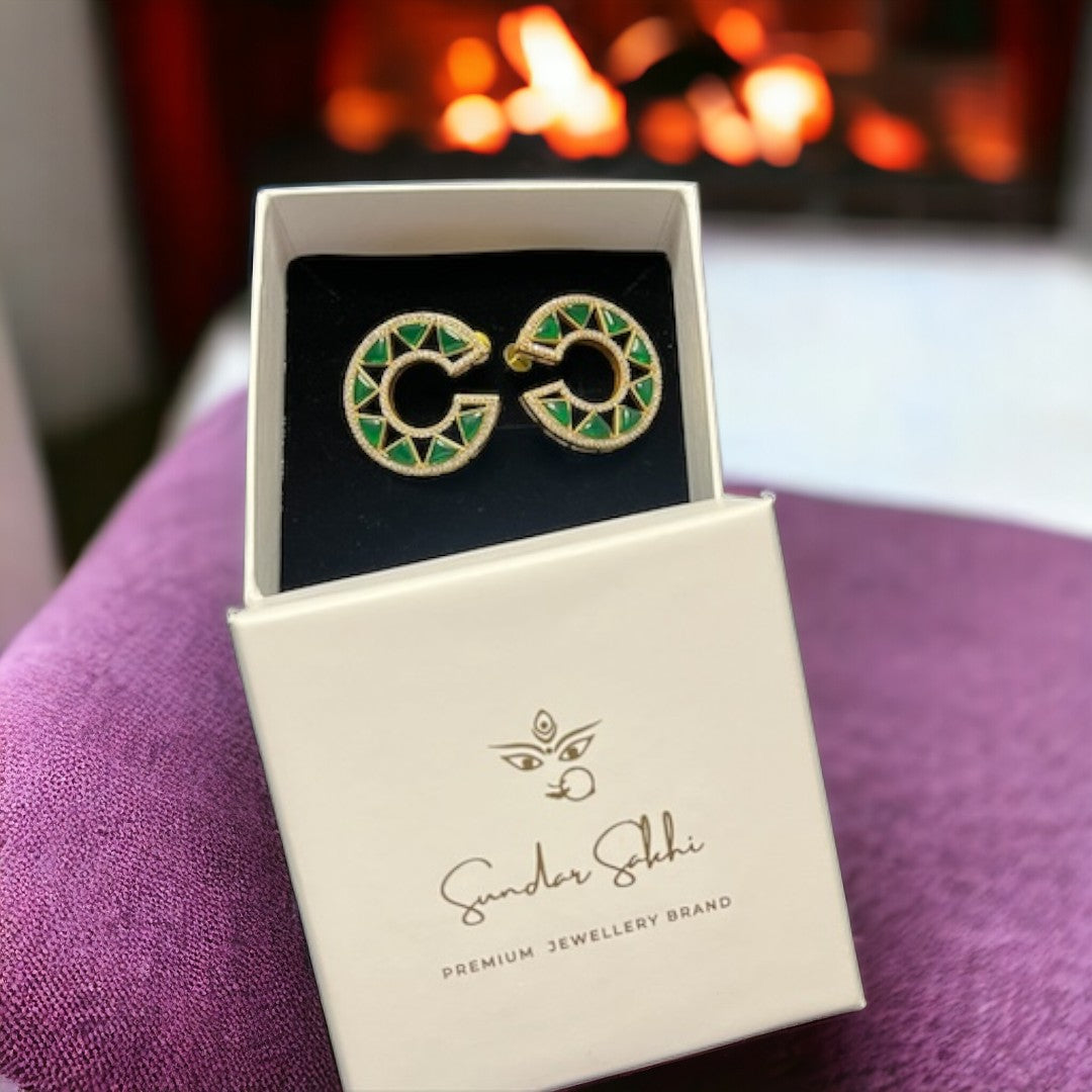 Dive into a realm of elegance with our Envy Emerald Curves earrings. Crafted with exquisite precision, these earrings feature a delicate curvature adorned with premium-quality pink stones, exuding a sense of refined sophistication. Each curve captures the essence of femininity and grace, making them the perfect accessory for any occasion. Elevate your ensemble with these timeless jewels and embrace the allure of luxury and style.